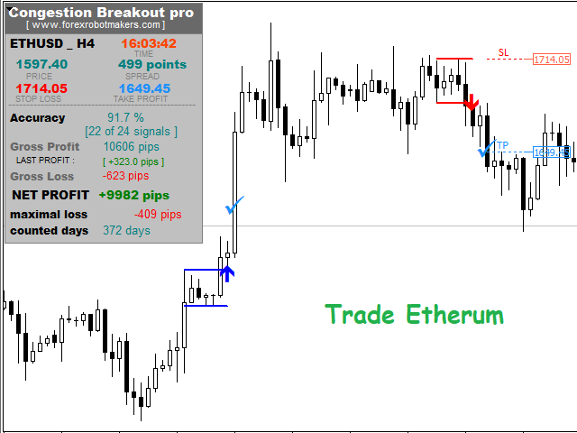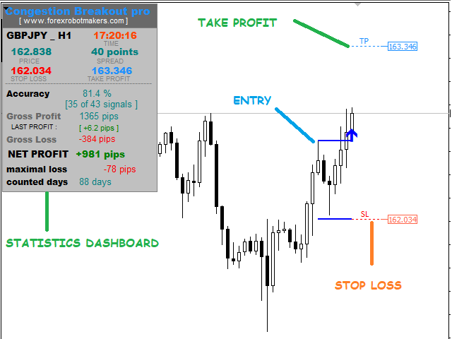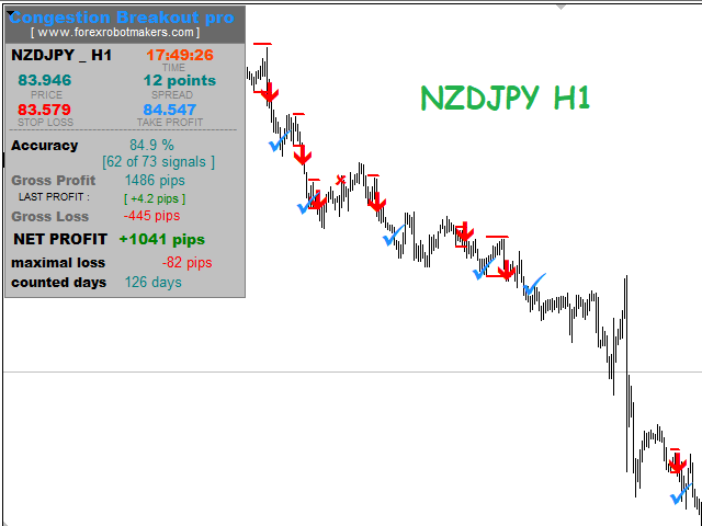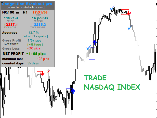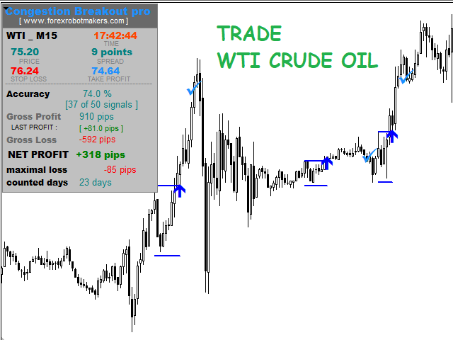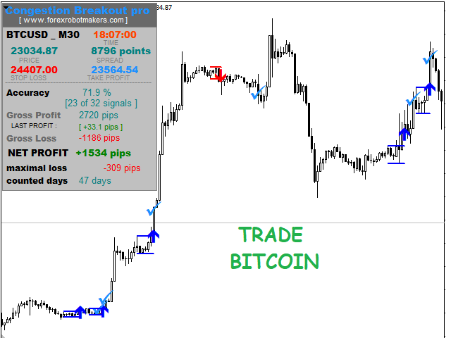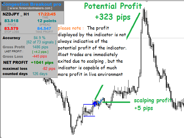 Congestion Breakout Pro is a Forex Indicator that scans the breakout of forex congestion zones . This Forex indicator is unlike any other congestion indicator you will find in the forex market right now, it uses an advanced algorithm not peculiar to most traditional forex congestion breakout indicators available today . The advanced algorithm used to define the forex congestions is greatly responsible for the high rate real congestion zones and low rate fake congestion breakout zones spotted by this forex product .To use , simply scan the most profitable forex pair using the statistics dashboard accuracy , then enter trades on signal arrow and exit at the Take Profit and Stop Loss levels.