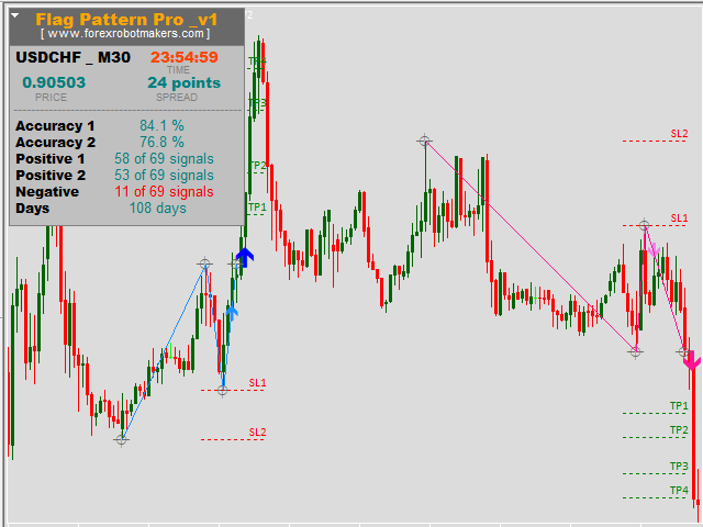 Flag Pattern pro is a Price Action (PA) forex indicator that scans the forex continuation patterns known as “Flag and Pennant Patterns” .