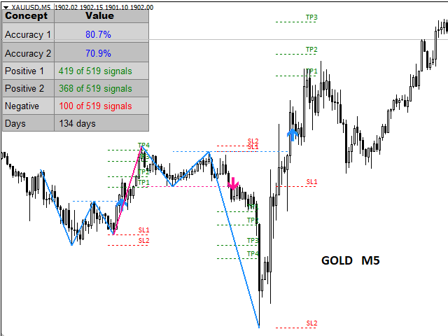 Accuracy 1 : This is the percentage of the times price hits TP1 before it hits stop loss.
