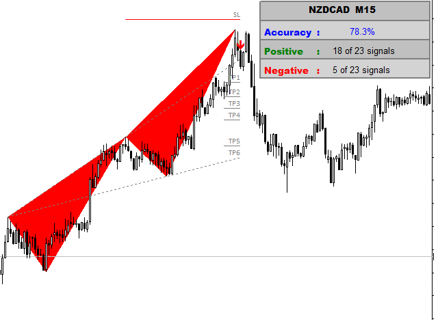 - Each pattern has a stop loss and 5 Fibonacci targets .